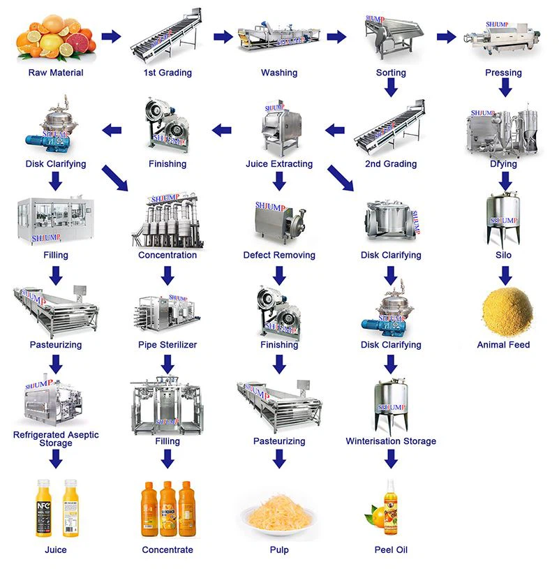 Korxonamiz jahon bozori uchun sitrus mevalarni qayta ishlash uskunalarini ishlab chiqaradi. Bizning apelsin sharbatini qayta ishlash liniyasi sitrusni qayta ishlash tizimining yuragi bo'lib, biz Xitoyda tsitrus ekstrakti texnologiyasi bo'yicha sanoat yetakchimiz.